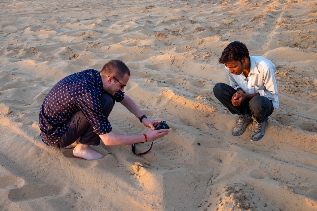 The evening we arrived, a guide walked us to the edge of Pushkar Lake, and described the religious importance Pushkar holds in the Hindu religion, while also explaining the prayer ceremonies we would witness as the sun began to set. As he talked us through the prayer, we realized others were starting to crowd around, and all of the sudden, we were in the middle of the ceremony, being coached through participating in it. It was something we would have preferred to have watched from a respectful distance, but it began before we had a say…